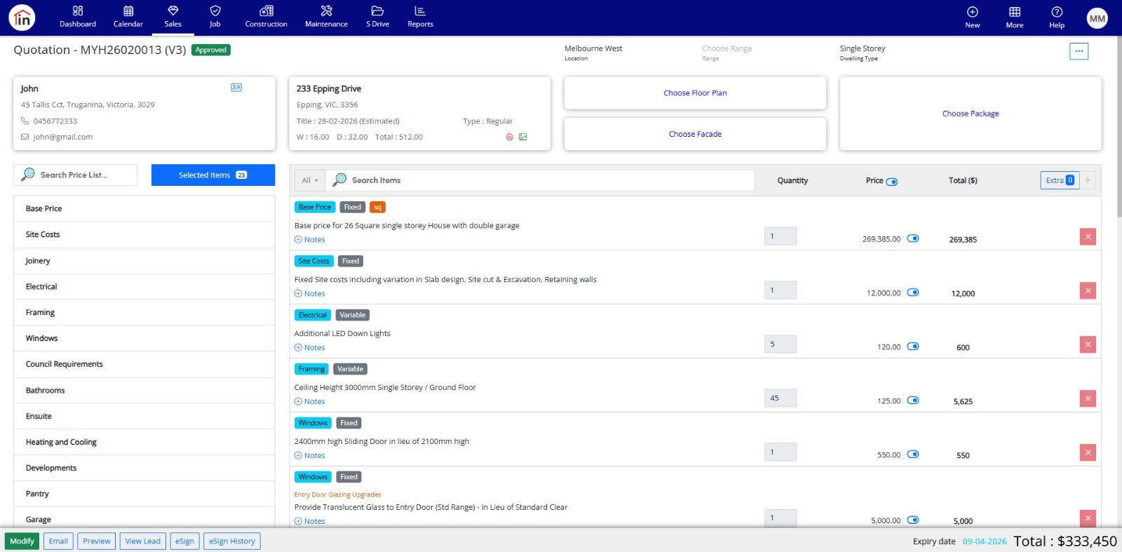 Transform your home building sales process with InSimplify’s intelligent quotation system. Create accurate, detailed and professional quotes that help you win more clients.